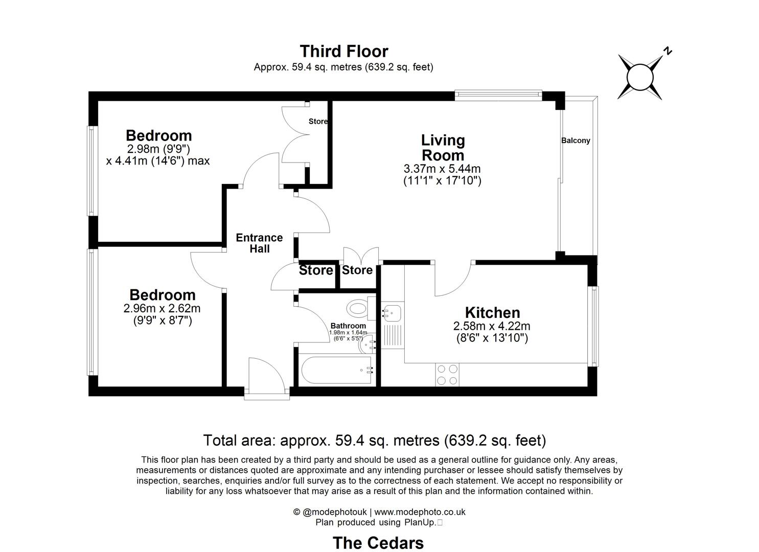 Situated on the third floor of the well-regarded The Cedars development in South Woodham Ferrers (CM3 5JD), this well-presented two double bedroom apartment offers approximately 640 sq ft of bright and comfortable living space, perfect for first-time buyers, downsizers, or savvy investors.The heart of the home is a generously sized living room, featuring neutral decor, plush carpeting, and large sliding doors leading to a private balcony - a peaceful spot with green views, ideal for relaxing or entertaining.The modern kitchen boasts ample cupboard space, integrated appliances including oven and gas hob, and space for a washing machine, all set against a crisp tiled backsplash.Both double bedrooms are spacious and filled with natural light, offering comfortable retreats with soft tones and a calm, airy atmosphere. Lease has 141 years left.Service Charge £1476 per annumGround rent £60 per annum