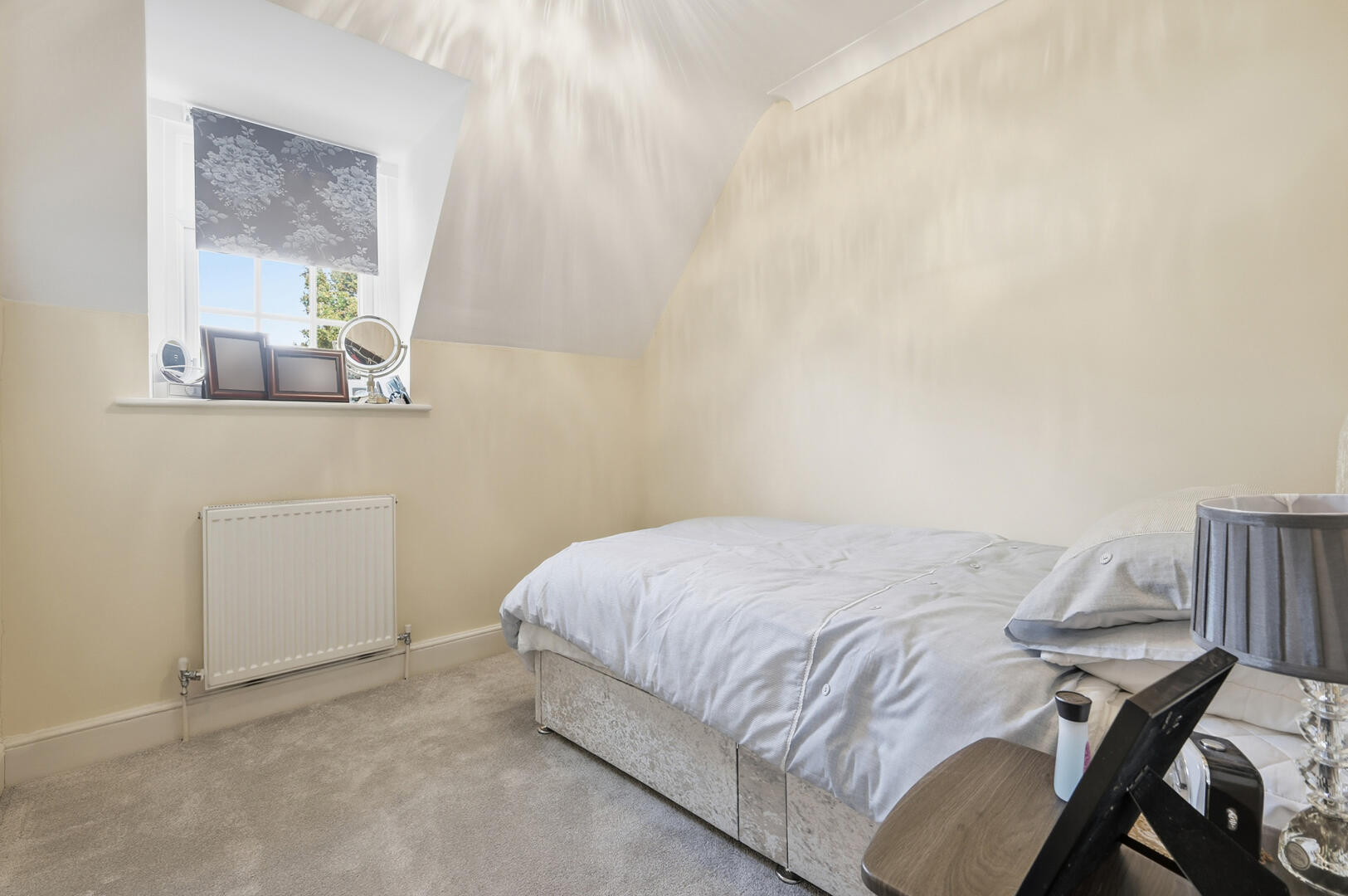 The third bedroom is a versatile space, ideal as a single bedroom or home office. It benefits from neutral décor and a dormer window, providing a light and airy atmosphere.