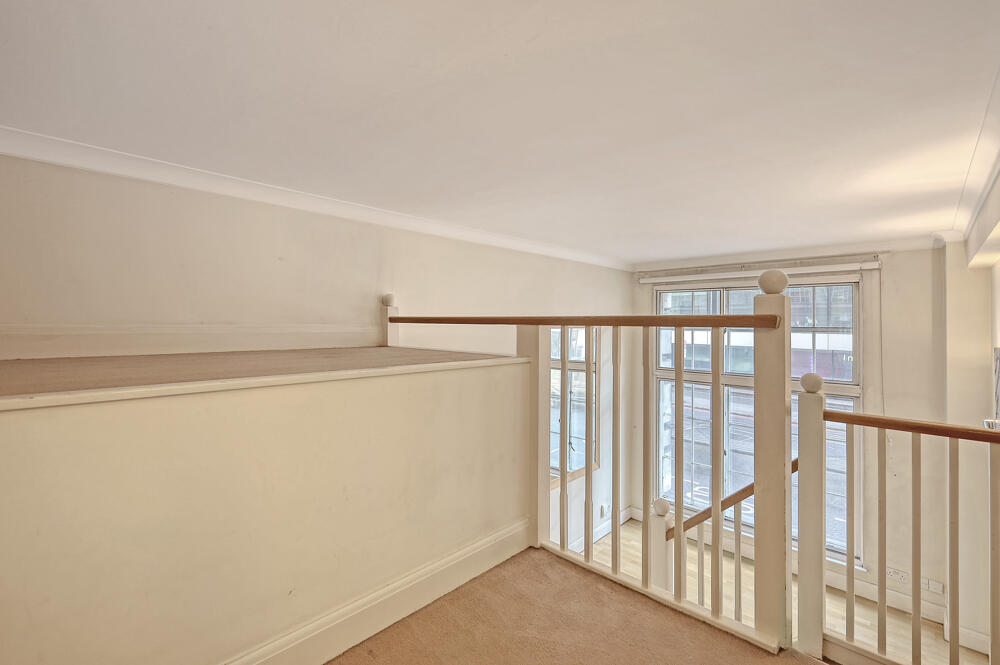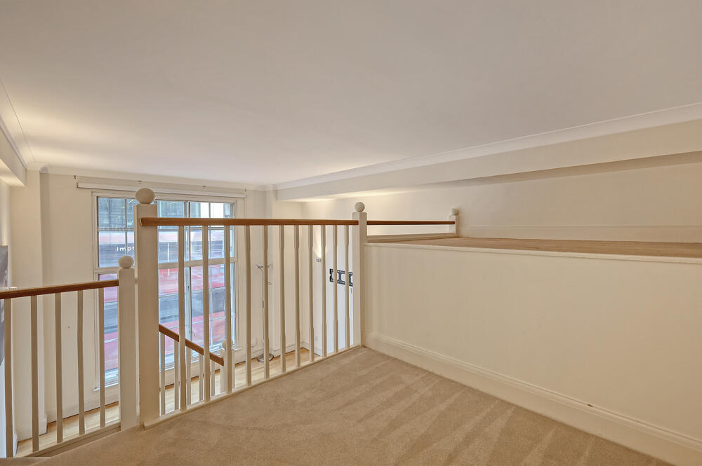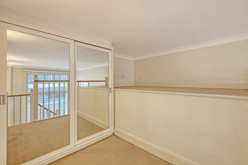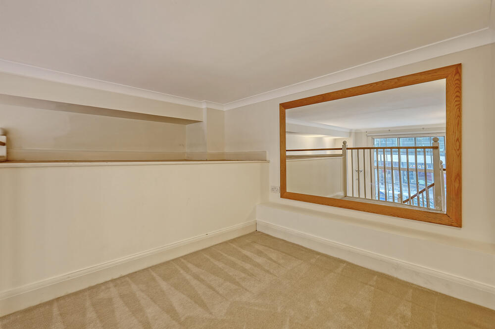 The first floor features a cosy Lounge measuring 2.54 by 4.00 metres (8'4" x 13'1"), providing an ideal space for relaxation. It is carpeted for comfort and overlooks the lower floor via a balustrade, enhancing the sense of openness. Adjacent to this is the Bedroom Area, a 2.54 by 3.06 metre (8'4" x 10') space, carpeted and featuring built-in mirrored wardrobes that offer ample storage while maximising the sense of space. This mezzanine layout creates a versatile living arrangement with a light and airy feel.